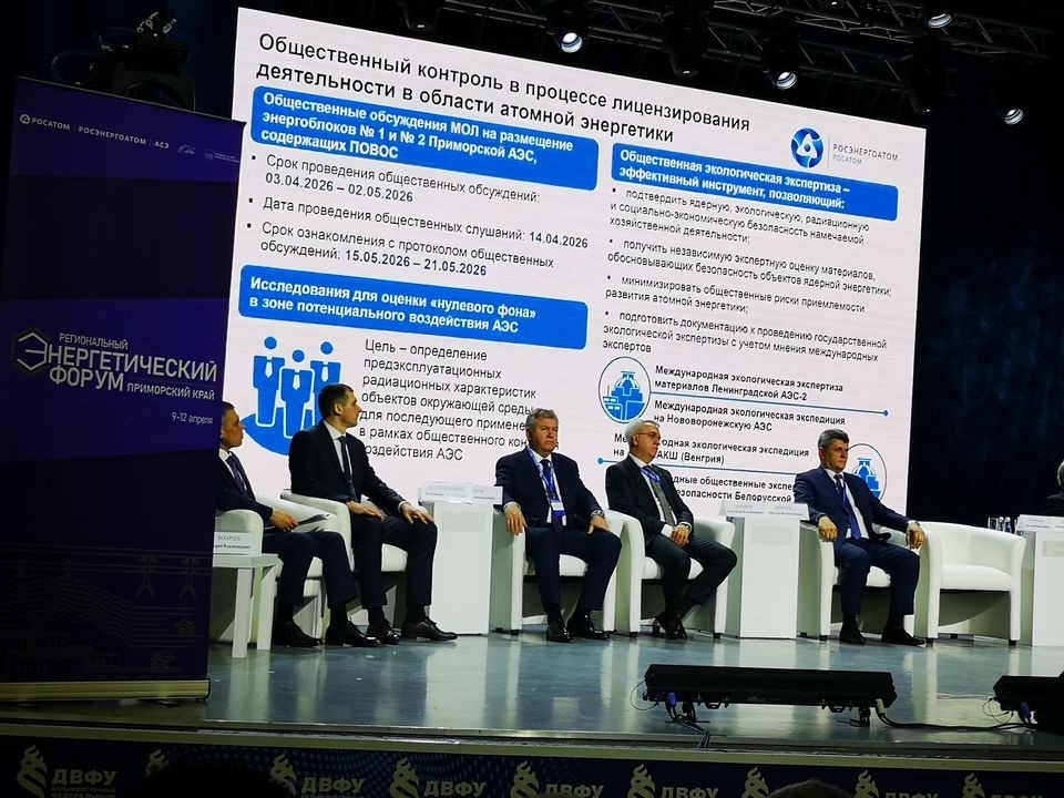 9 апреля 2026 года на площадке Дальневосточного федерального университета на острове Русский во Владивостоке состоялся региональный Энергетический форум Приморского края. В центре внимания экспертов и представителей общественности оказались вопросы будущего размещения в регионе атомной станции. Форум открылся приветственными словами губернатора Приморского края Олега Николаевича Кожемяко и Алексея Геннадьевича Жукова, первого вице-президента по сооружению АО «Атомстройэкспорт». Всего в мероприятии приняли участие более двухсот человек – представители региональных властей, проектных организаций, научных институтов и общественных советов.